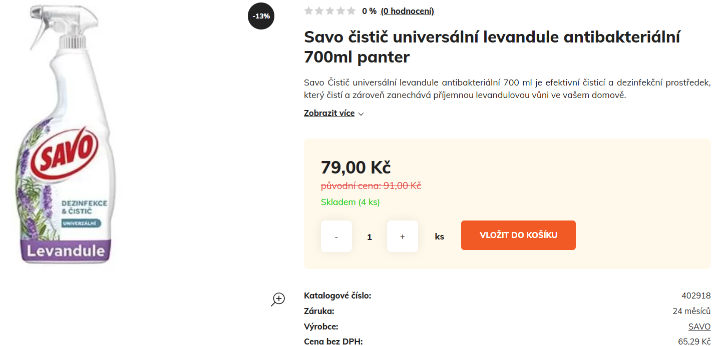 Pokud dáváte přednost jemnější vůni, sáhněte po Savo čističi univerzálním levandule antibakteriální (700 ml) – účinně čistí a zároveň zanechává příjemnou levandulovou vůni, která domov krásně provoní.