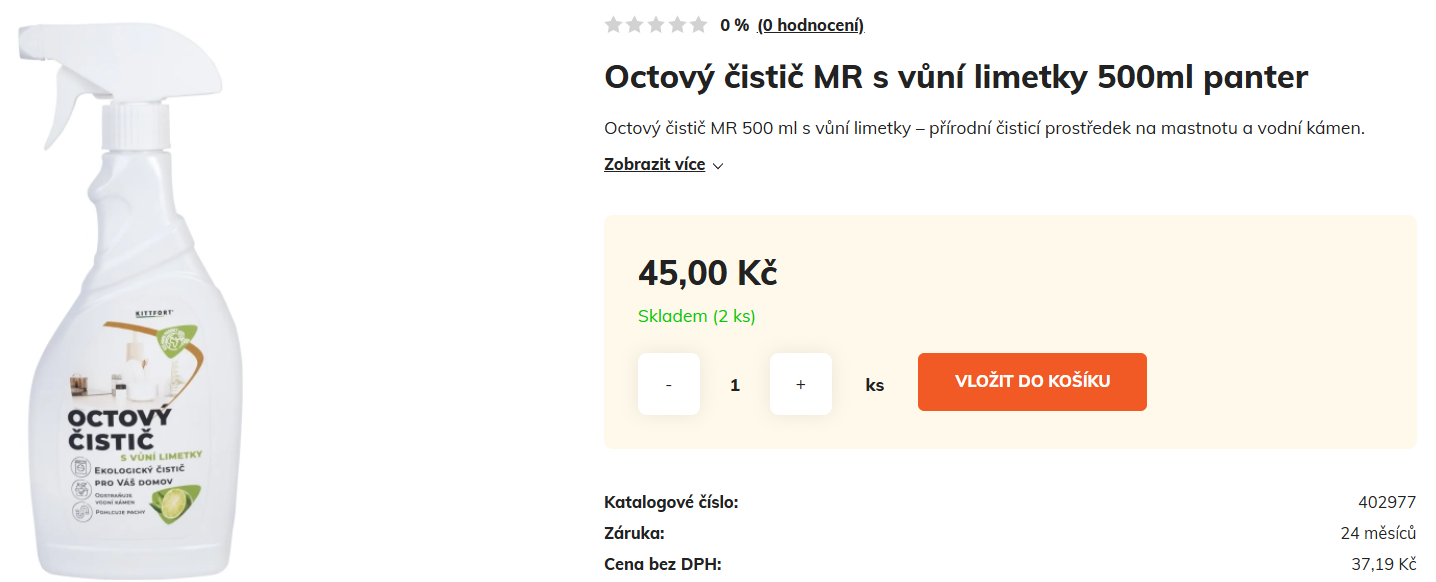 Pokud dáváte přednost šetrnějším prostředkům, octový čistič je univerzální volba. Skvěle si poradí s vodním kamenem, mastnotou i okny, a navíc nezatěžuje životní prostředí.