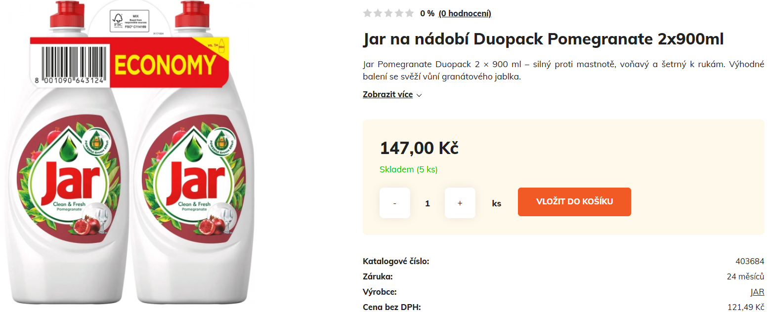 Pokud milujete vůni svěžesti, sáhněte po Jaru na nádobí Lemon Duo (500 ml + 900 ml) – vůně citronu zanechá po umytí příjemný pocit čistoty. A pro ty, kteří mají rádi ovocné tóny, je tu Jar na nádobí Duopack Pomegranate (2×900 ml) – účinný, úsporný a navíc krásně voní.
