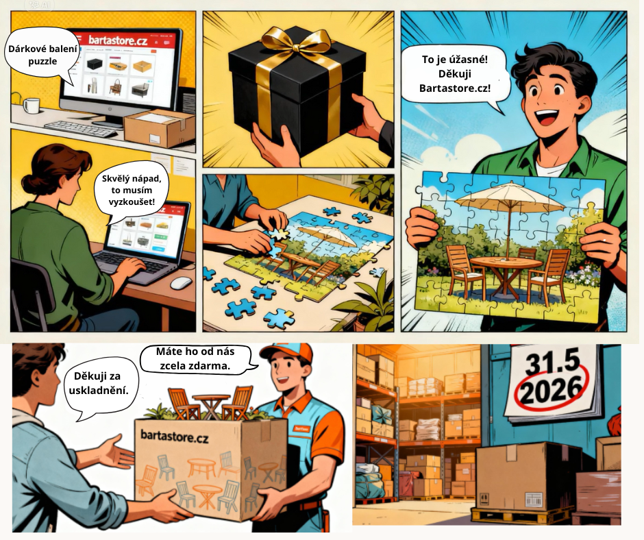 Takže v prosinci žádné starosti s místem – dárek čeká bezpečně u nás a váš blízký se o něm dozví až při skládání puzzlí.